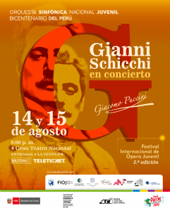 En su segunda edición, el FIOJ presenta la ópera Gianni Schicchi de Giacomo Puccini en versión concierto, los días 14 y 15 de agosto en el Gran Teatro Nacional, con la participación de la Orquesta Sinfónica Nacional Juvenil Bicentenario dirigida por el maestro Lorenzo Tazzieri. El festival, que reúne a jóvenes talentos de Perú, Chile […]