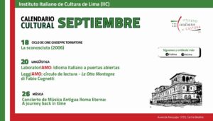 En el marco de la participación de Italia como País Invitado de Honor en la Feria Internacional del Libro de Lima 2025, el Instituto Italiano de Cultura acoge una clase maestra excepcional con los músicos del ensamble Morricone & Friends, encabezado por el célebre saxofonista Gianni Oddi. Esta clase está dirigida a músicos profesionales, estudiantes […]