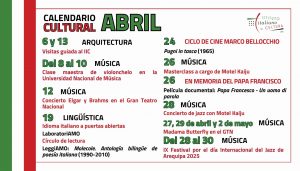 El Instituto Italiano de Cultura de Lima organiza una visita guiada al edificio del Instituto Italiano de Cultura, construido entre 1929 y 1930, reconocido como centro de la vida cultural de la Comunidad Italiana y Patrimonio Cultural de la Nación. La visita será realizada por la Directora del Instituto, la Doctora Silvia Vallini, especialista en Historia del Arte. […]