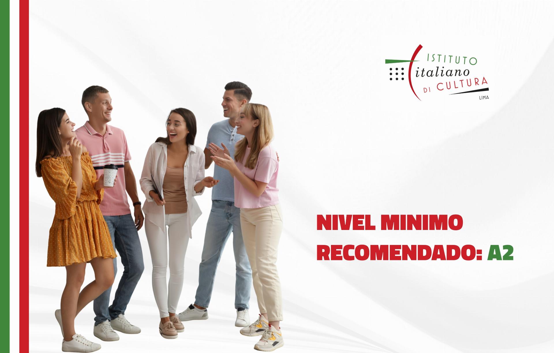 Este curso permite, a todos los que poseen un nivel mínimo de A2 completo, de profundizar la cultura italiana y de mejorar la capacidad comunicativa. Dirigidos a adultos y jóvenes desde los 15 años cumplidos.
