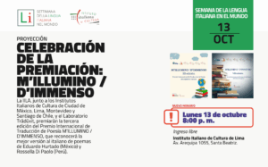 L’IILA, insieme agli Istituti Italiani di Cultura di Città del Messico, Lima, Montevideo e Santiago del Cile, e al Laboratorio Trādūxit, premierà la terza edizione del Premio Internazionale di Traduzione Poetica M’ILLUMINO / D’IMMENSO, che riconoscerà la migliore versione in italiano delle poesie di Eduardo Hurtado (Messico) e Rossella Di Paolo (Perù). Inoltre, assisteremo alla lettura […]