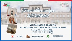 L’Istituto Italiano di Cultura di Lima organizza una visita guidata all’edificio dell’Istituto Italiano di Cultura, costruito tra il 1929 e il 1930, riconosciuto come centro della vita culturale della Comunità Italiana e Patrimonio Culturale della Nazione. La visita sarà accompagnata dalla direttrice dell’Istituto, la Dott.ssa Silvia Vallini, Specialista in Storia dell’Arte. Vi aspettiamo domenica 13 ottobre 2024 alle 10:00 […]