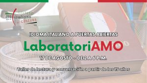 Lingua italiana a porte aperte Laboratorio di lettura e conversazione per imparare la lingua italiana o consolidare quanto appreso per i livelli di base e intermedio, completamente gratuito. Iscrizione anticipata tramite Google Forms, il link per il laboratorio del 17 agosto sarà pubblicato sui social media il 12 agosto alle 14 ore. Posti disponibili: 18 […]