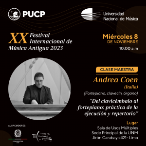 Nell’ambito del XX Festival Internazionale di Musica Antica, il maestro Andrea Coen offre una masterclass gratuita dedicata al fortepiano, clavicembalo e organo. Masterclass previa iscrizione: https://forms.office.com/r/zZWSXeH7g1